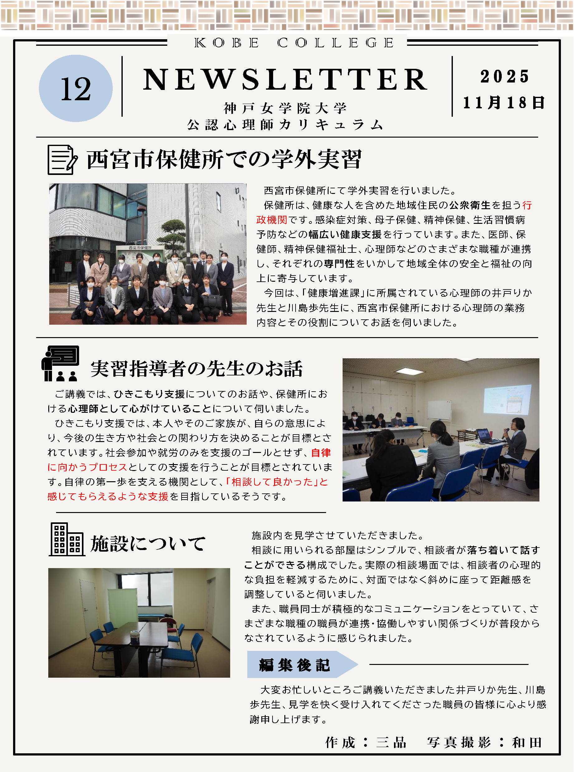 公認心理師カリキュラム「心理実習」ニュースレターvol.12