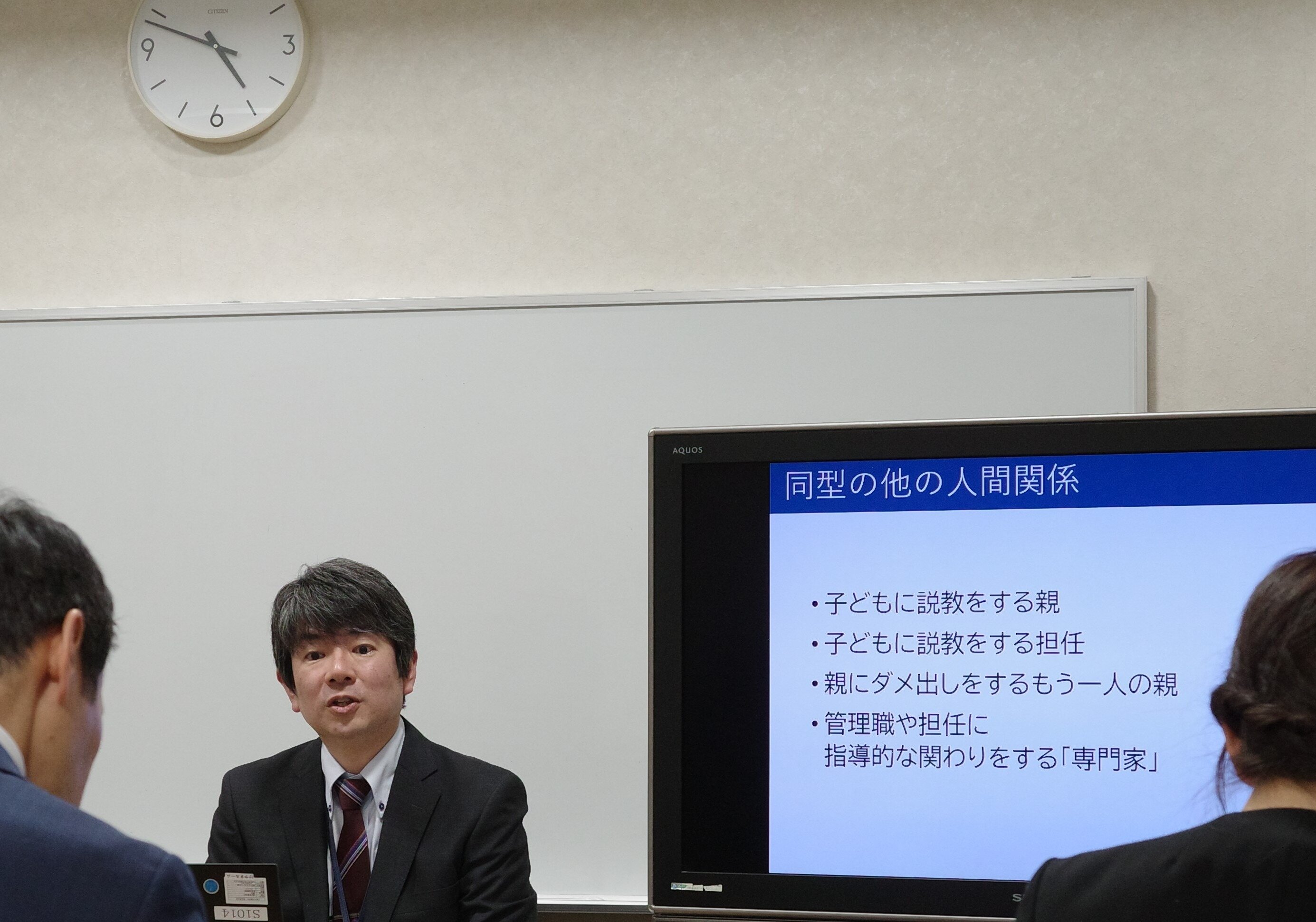 今回の研修は「学校の先生方の心を想像する――協働的な連携に向けて」と題し,連携時に生じる感情体験をどのようにやりとりに活かすかを考えるものでした。